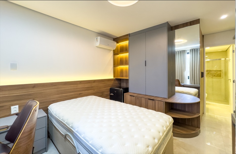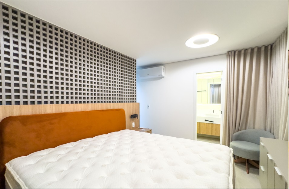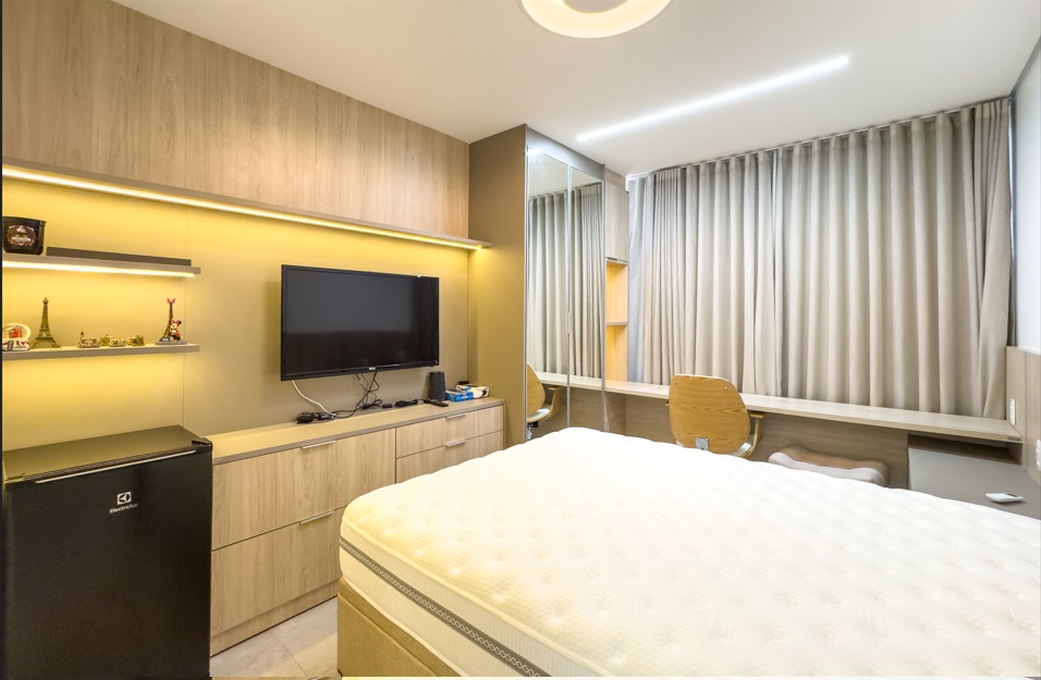 Todos os armários novos de muito bom gosto, paineis, ar-condicionado, frigobar em todos os cômodos, cortina, esculturas e muito mais.