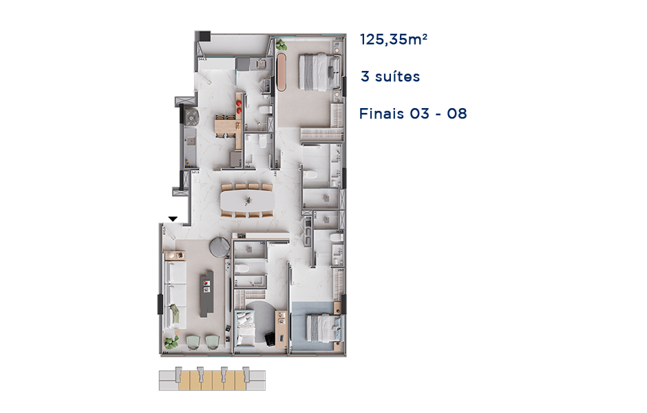 Uma planta muito bem acertada com 126m², 02 vagas de garagem, 02 vagas de garagem, vazado, lazer completo, novo, primeira moradia.
